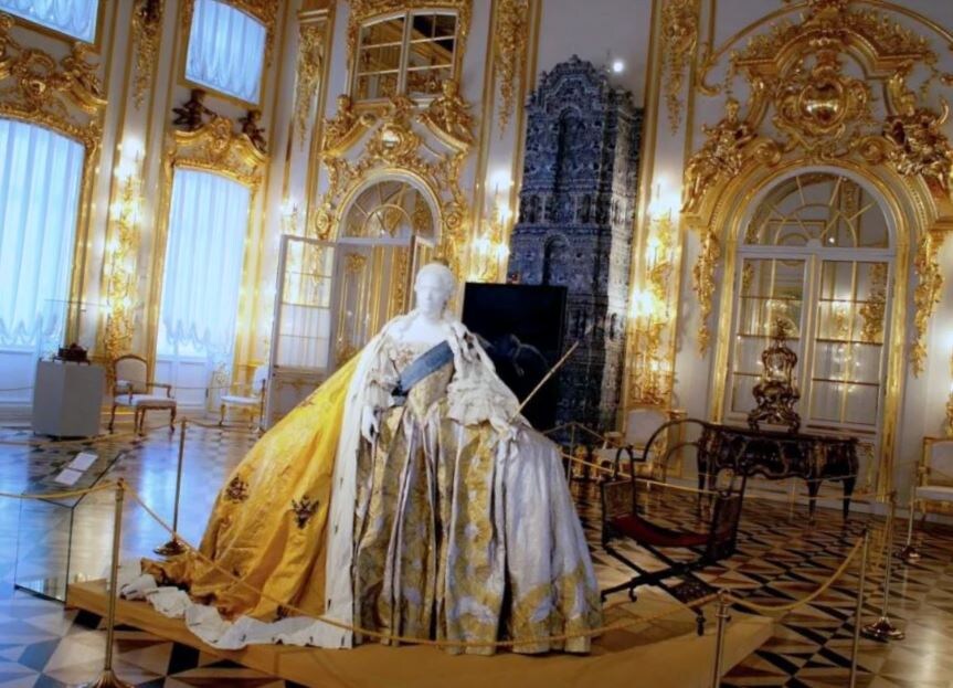 В приемном зале дворца Екатерина — вся в белом, как ледяная волна.