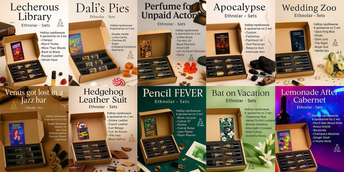 🤩🤩🤩🤩🤩🤩🤩🤩🤩🤩 🤩🤩🤩🤩🤩🤩🤩🤩 🤩🤩🤩🤩🤩🤩🤩 🤩🤩🤩🤩🤩🤩🤩🤩🤩🤩 Всем привет!💋 На днях на WB будут в продаже наши авторские парфюмерные наборы, примерно 7-8 июля. И чуть позже - на OZON Что внутри каждого набора, можно познакомиться уже сейчас🌟 🤩 Ее величество носит кроссовки 🤩 Арт. 441171007 🤩 Развратная библиотека 🤩 Арт. 441171016 🤩 Апокалипсис 🤩 Арт. 441171022 🤩 Актеры без зарплаты 🤩 Арт. 441171024 🤩 Свадьба в зоопарке 🤩 Арт. 441160048 🤩 Венера заблудилась в джаз-баре 🤩 Арт. 441171010 🤩 Лимонад после каберне 🤩 Арт. 441171020 🤩 Пирожки Дали 🤩 Арт. 441171008 🤩 Общественный транспорт 🤩 Арт. 441171021 🤩 Пиратский день стирки 🤩 Арт. 441171011 🤩 Кислотные Фламинго 🤩 Арт. 441171019 🤩 Летучая мышь на каникулах 🤩 Арт. 441171006 🤩 Настоящие бомбы не дремлют 🤩 Арт. 441171009 🤩 Пельмени на веранде в Риме 🤩 Арт. 441171017 🤩 Слон в янтарной лавке 🤩 Арт. 441171005 🤩 Вечеринка Самурая 🤩 Арт. 441171015 🤩 Ежик в кожаном костюме 🤩 Арт