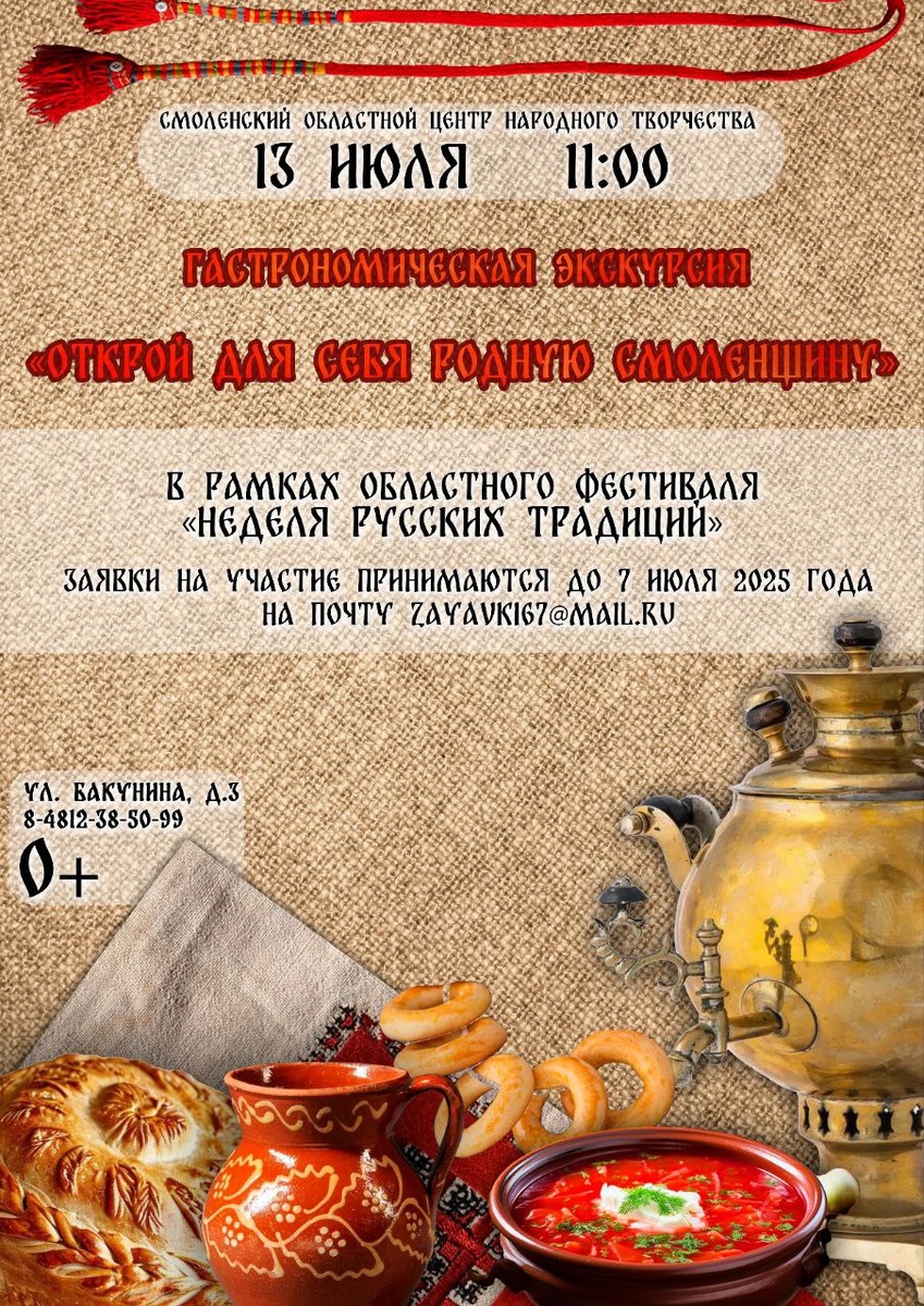 🪆Путешествие по миру русской культуры и традиций! 🌿13 июля на летней площадке Центра народного творчества выступят талантливые народные коллективы, исполняющие душевные песни и зажигательные танцы. 🪆Вас ждёт насыщенная концертная программа с музыкальными традициями представленных округов и дегустация традиционных смоленских блюд. Уникальные гастрономические предложения каждого района познакомят вас с кулинарным наследием их земли. 🌿Заявки на участие принимаются на адрес электронной почты zayavki67@mail.ru до 7 июля. ❗️Подробности в Положении www.smolcentrnt.ru/files/493/... ⏰️Начало в 11:00 Вход свободный 📍Адрес: ул. Бакунина, 3 ☎️Телефон: 8 (4812) 38-50-99 #СмоленскийЦентрНародногоТворчества