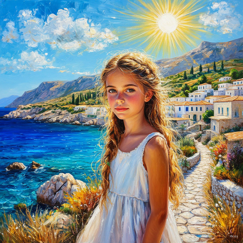 В маленьком городке на берегу Эгейского моря, где солнце всегда светит ярче, чем где-либо еще, жила девушка по имени Арина. Она была потомком древней Минойской цивилизации, и в её жилах текла кровь, полная тайн и загадок. Арина всегда чувствовала связь с прошлым, словно в её душе хранились эхо древних ритуалов и забытых легенд.