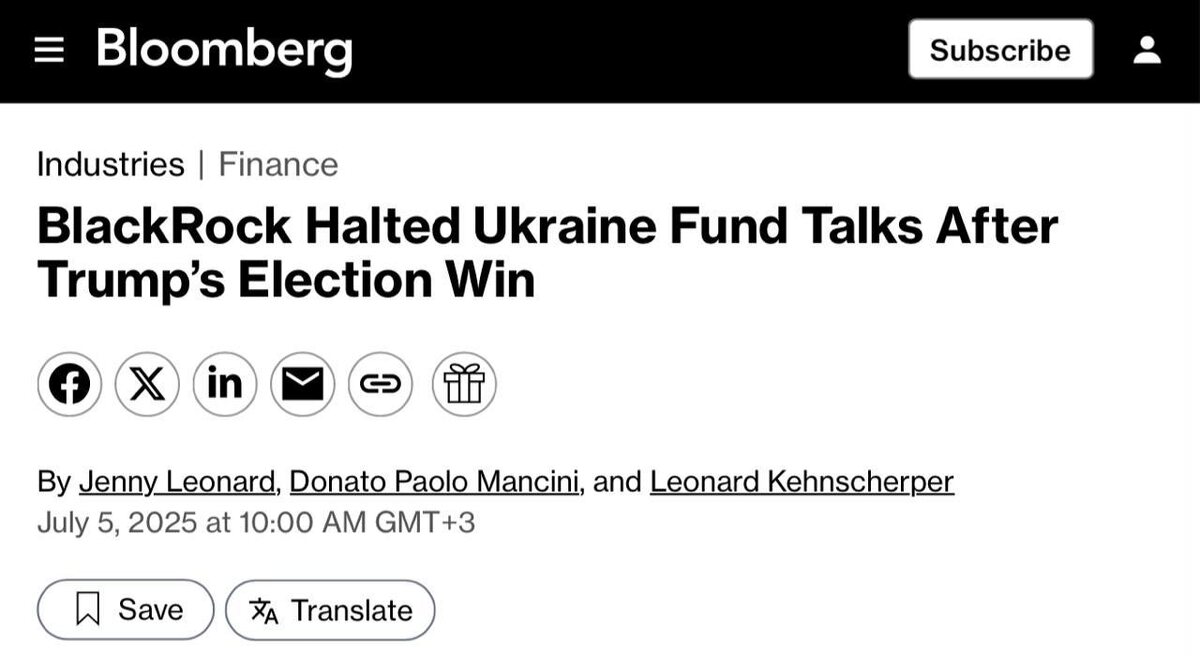Американская компания BlackRock прекратила поиск инвесторов для восстановления Украины, — Bloomberg. По данным издания, инвесторы утратили интерес к проекту из-за растущей неопределённости в отношении будущего Украины. Заря | Новости - Подписаться