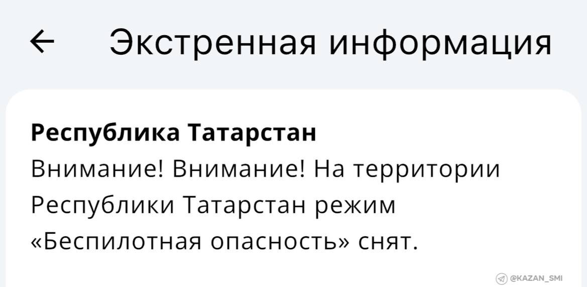 🚨 Режим «Беспилотная опасность» снят в Татарстане