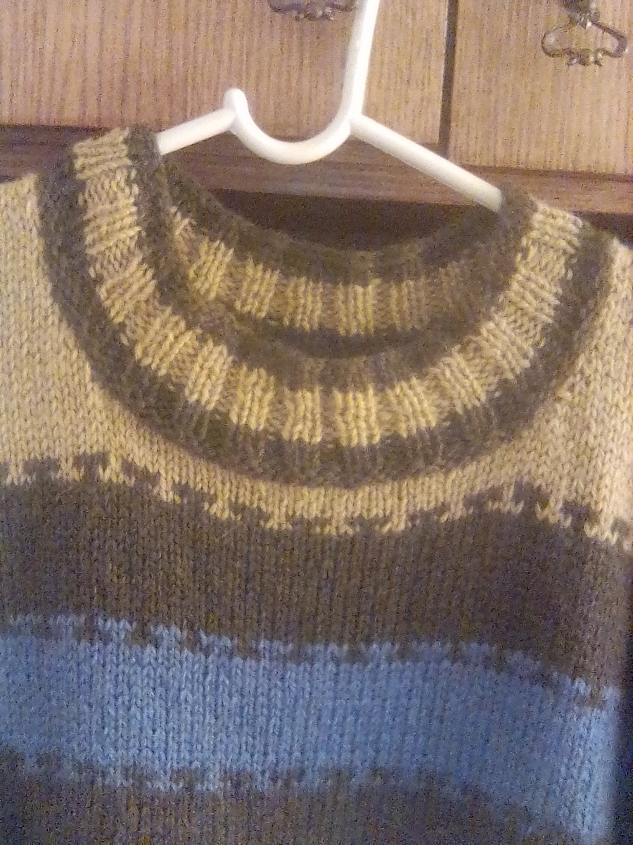 Когда возникает вопрос, что бы такое связать, естестенно для настоящих, правильных вязальщиц встает проблема выбора пряжи. У меня не всегда так происходит. Можно даже сказать, что редко. Чаще мне дарят пряжу. От подарков не отмахиваются, и поэтому я свои художественные и бытовые предпочтения сообразую с тем, что у меня есть. И вот была у меня кофта на пуговицах, которая была связана для девушки чуть более двадцати лет назад. Кофта была таких таежных расцветок. Вязала я ее дет 22 назад. Но, это былаа не первая ходка ниток. До этого нитки были в джемпере, связанном английской резинкой и который пять лет честно служил подростку. И только потом они стали на два года кофтой. А кофта, несмотря на то, что связана была очень аккуратно, и на мой взгляд с выдумкой, скоро надоела девушке, и она вернула ее. Действительно, кофта была связана на спицах номер три, а пряжа была импортная, дорогая, с толщиной где-то около 120 м в ста граммах Те, кто вяжет, понимают, что это довольно толстые