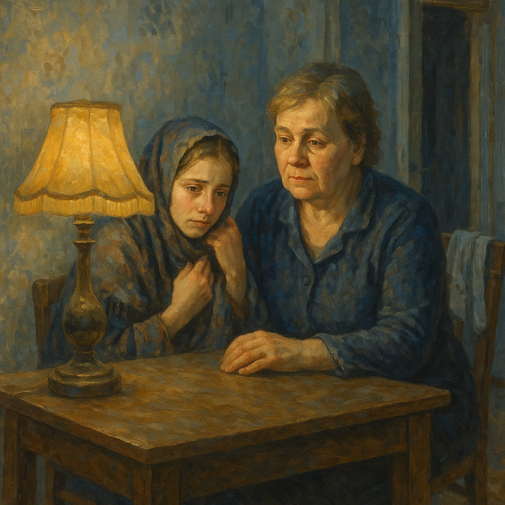 Однажды ночью, когда луна бледным светом озаряла комнаты, она услышала тихий плач, подобный жалобе потерянной души. Сердце Елизаветы сжалось, но любопытство пересилило страх. Она тихонько подошла к комнате, где некогда жили Павел и Наталья, и осторожно толкнула дверь. Там, в углу, съёжившись, сидела юная дева, худенькая, с заплаканными глазами. «Не гоните меня, умоляю!» — прошептала она, дрожа от страха.