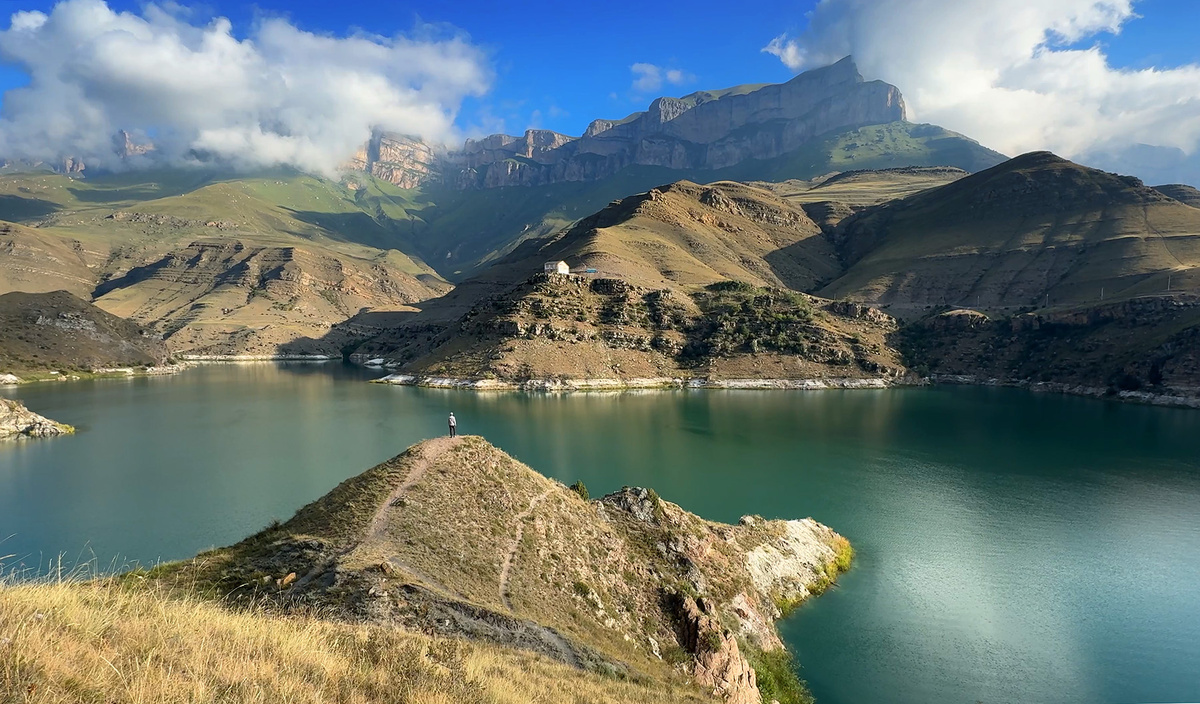 46-й день путешествия по Кавказской тропе. Ночевал у озера Гижгит - это искусственный водоём в окружении красивых гор. Раньше этот техногенный объект был отстойником сточных вод для вольфрамо-молибденового комбината расположенного неподалеку в городе Тырныауз. Комбинат закрыли много лет назад и природа здесь потихоньку восстанавливается. Теперь в озере водится рыба, кто-то даже здесь рыбачит. Купаться всё еще не рекомендуется. Сейчас в основном сюда приезжают туристы, чтобы полюбоваться видом. От озера Гижгит начинается четырехдневный автономный переход по высокогорью. Путь идёт на хребет вдоль Баксанского ущелья, откуда открывается вид на Тырныауз - самый высокогорный город России. С высоты город выглядит как игрушечный макет зажатый крутыми горами. На хребте встретил кош. Собака, охраняющая скот, заметила меня ещё издалека и своим лаем привлекла внимание пастуха. Он вышел встретить меня. Пригласил выпить чай. Внутри хозяйничал второй пастух постарше. Они поднимаются из Тырныауза в