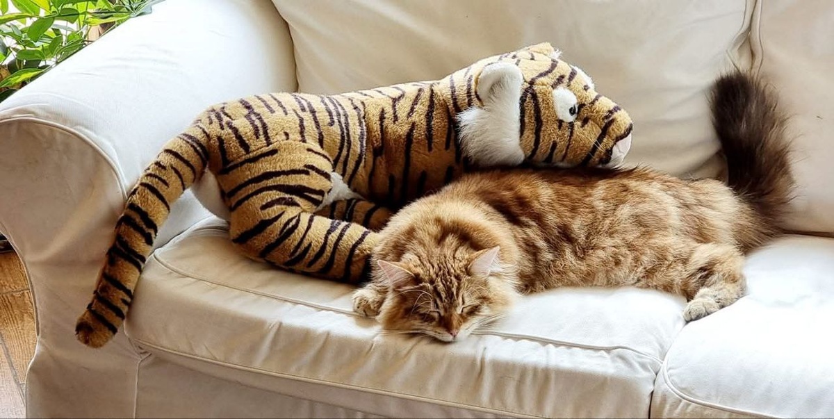НЕ БУДИТЕ СПЯЩЕГО ТИГРА... Мир охраняют пять легендарных тигров; синий — восток, чёрный — север, красный — юг, белые — запад и центр. Двое из них сейчас дрыхнут на моем диване.