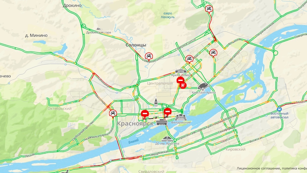 На выездах из Красноярска автомобилисты встали в километровые заторы. На картах 2GIS показаны всего 3-балльные пробки, однако некоторые участки окрашены в бордовые цвета. Хуже всего обстановка на Николаевском мосту и улице Свердловской. Сильный затор наблюдается от станции Енисей до Ботанического сада. Автомобилисты ругаются и просят их пропустить. — Пустите на работу! Я опаздываю. — У меня свадьба, я женюсь, дайте дорогу! — Пустите домой, котики кушать хотят. Некоторые автомобилисты обвиняют некорректную работу светофоров, а другие любителей отдохнуть на озёрах. Ещё один сильный затор наблюдается на Енисейском тракте. Судя по картам там произошло ДТП. По словам водителей, затор образуется каждый день, включая выходные. Также небольшие пробки образовались на Северном шоссе в сторону Солонцов и на Калинина. фото: 2GIS, FreePik.