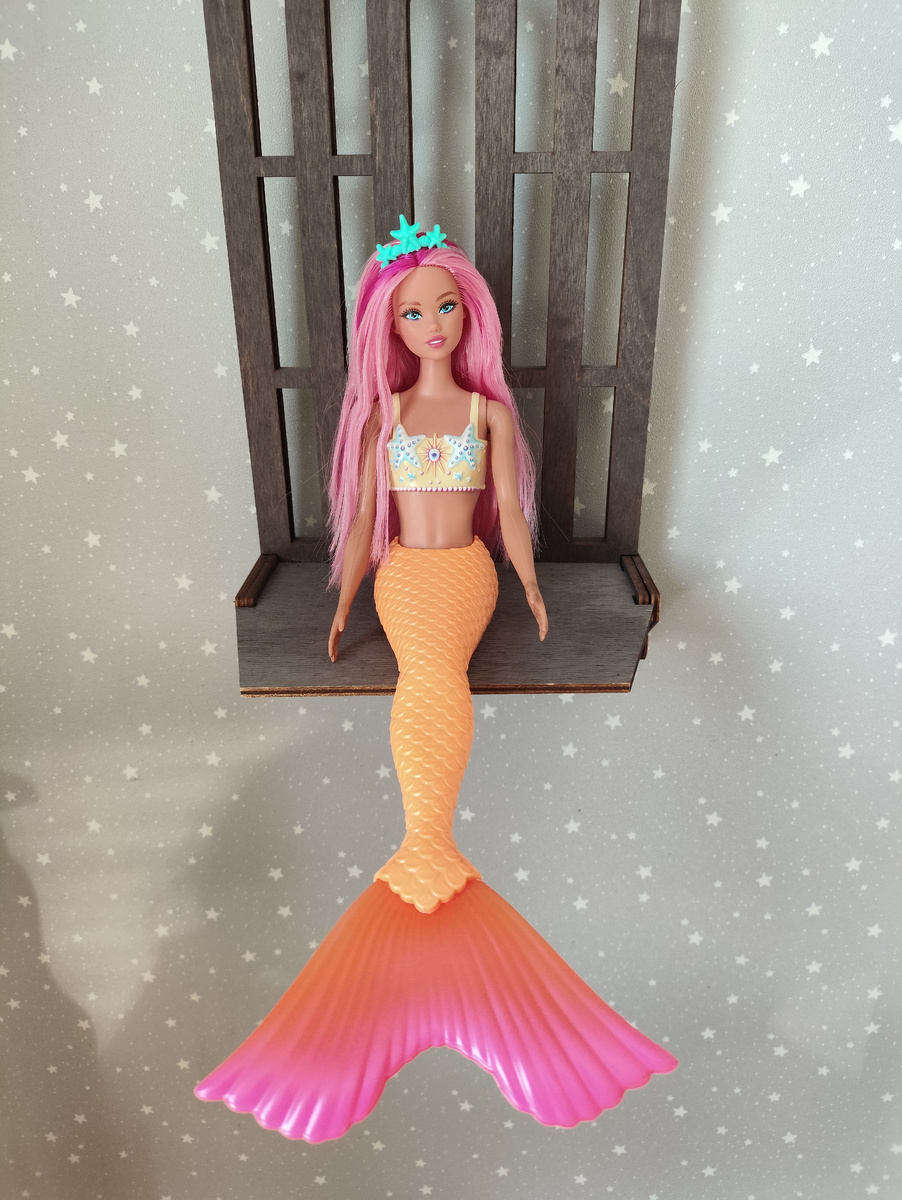 Вот и у меня появилась та самая розоволосая Одиль. Я была уверена, что мне нужна русалка с сиреневыми волосами и мне точно хватит одной. Но чем больше смотрела фото коллекционеров, тем лучше понимала - нужна и точка. В таком русалочьем виде Ариэль просидела у меня больше месяца, и меня вполне все устраивало, я не торопилась садить ее на подвижное тело, но все решил роковой случай. Я пыталась уложить волосы своей любимой Викуле, они были в обычном воске для волос. Немного подсушила феном и напрочь сожгла пряди у лица. Они расплавились на глазах за секунду. Теперь, передо мной стоит задача найти свою Вику снова. Год назад мы ее еле забрали с озона, кукла была с историей, но в том виде я не могу с ней смириться. Тело решено было отдать Ариэль, а голова на русалочьем теле уже едет к новой хозяюшке. Викулю безумно жаль, но зато я совершенно иначе посмотрела на Ари. Какая она хрупкая на петит теле, мне кажется это подросток лет 16. И ей очень идет школьная форма. Украшение с головы снимать