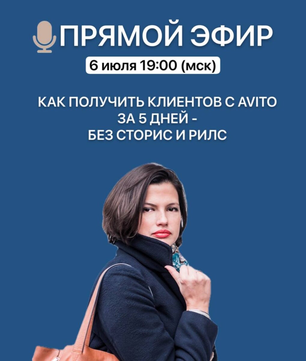 Как за 5 дней можно начать получать заявки с Авито Ты когда-нибудь выкладывала что-то на Авито — и получала… тишину? Листала чужие услуги и думала: «Как это вообще работает?».. Или ты просто уже устала от контента, рилсов, сторис, воронок, сторителлингов и всего этого маркетингового танца?.. 📣 Завтра я выйду в эфир и расскажу: 💥 Как за 5 дней можно начать получать заявки с Авито — без сторис — без прогревов — без выгорания 🔎 Что будет на эфире: ✅ Почему у тебя не было откликов раньше ✅ 3 ошибки, которые блокируют отклик ✅ Что написать в объявлении, чтобы тебе захотели написать ✅ Пример реального кейса «до/после» ✅ Отвечу на вопросы в прямом 📍Эфир будет живой, тёплый и честный. Без пафоса. Соберу для тебя самое полезное. Покажу, как это делаю я и как ты можешь начать. 🕖 6 июля в 19:00 (МСК) Прямо здесь, в этом канале Будешь?
