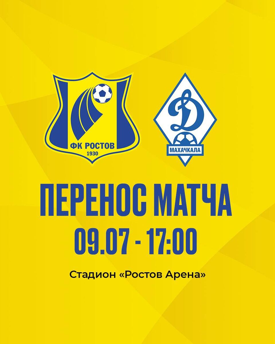 Игру против «Динамо» из Махачкалы проведем 9 июля в 17:00 по мск на «Ростов Арене».