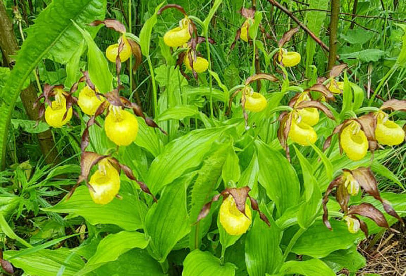 «Изящен, элегантен и пригож, А лепесток один на туфельку похож!» Ф.Полак В детстве у меня был набор открыток с редкими и очень красивыми растениями. Я любила их разглядывать, запоминать названия и даже зарисовывать. Одна из них поразила мое воображение больше остальных, я никак не могла поверить, что такое бывает. Венерин башмачок! И родилась мечта ну хоть один раз увидеть это чудо. Вот мой самый первый рисунок цветными карандашами на тетрадном листе в клеточку, который я сохранила с тех пор. В лес меня начали брать лет с пяти, мама была заядлым грибником, вот и нас с сестрой заразила. И понятное дело - я ж не только по грибы! Там столько всего интересного! Искала и находила всё, кроме башмачка. До этого года мечта так бы и осталась мечтой, если бы не удивительный случай. В начале июня (точнее 8 июня, Троица) мне позвонил мой одноклассник, человек очень добрый и наблюдательный, и сказал, что на своем участке начинает рыть котлован под фундамент, а тут в кустах цветёт какой-то симпатичн