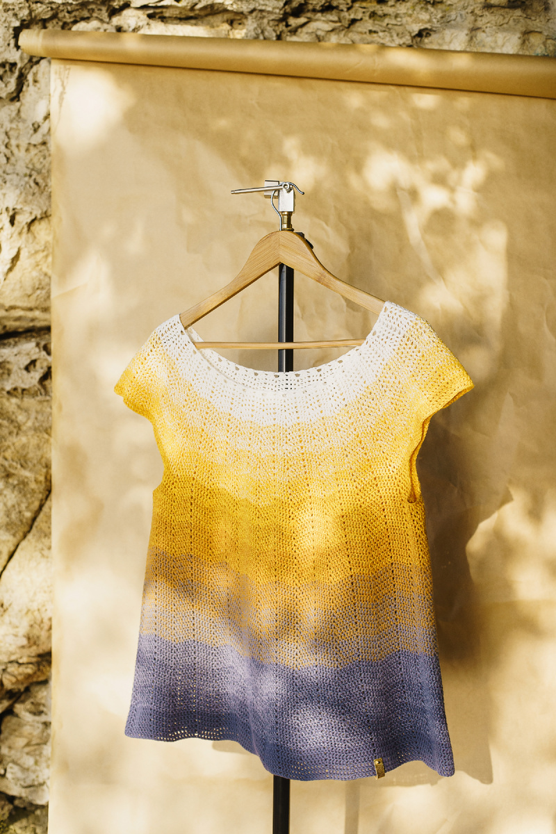 К сожалению, на вязание времени остаётся совсем мало и носки продвигаются очень медленно. Зато мысли бушуют. 😂 У меня не идёт из головы круглая кокетка крючком. Я много о чем думала в последнее время, что хотелось бы связать, но за само вязание так и не взялась. Если бы не было пряжи в наличии, то да, причина уважительная. Но пряжа есть, несколько моделей практически досконально продуманы, а воз и ныне там. 😄 То ли это от недостатка свободного времени, то ли ещё из-за чего-то, но пока так. Хорошо, что хоть носочки вяжутся, пусть и медленно. 😊 Так вот, про круглую кокетку. Если выделить из всех витающих в моей голове моделей какую-то одну, то это именно она, Госпожа круглая кокетка, связанная крючком. Что меня в ней привлекает, я точно не знаю. Идея из разряда «хочу и всё». 😂 Такой тип кокетки я вязала лишь дважды, если, конечно, меня не подводит память. Модели идентичные, связанные одним и тем же узором, но в разных размерах и разной пряже. 😍 Этот топ связан из ЯрнАрт Розегарден