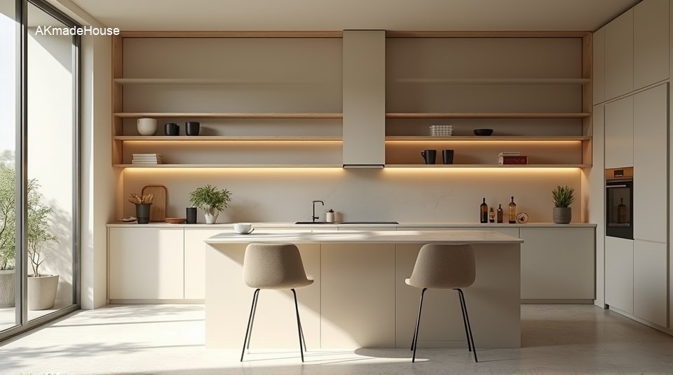 Интерьер — это не перестановка вещей ради моды, а поиск равновесия между нужным и избыточным. Здесь каждая полка, каждый стеллаж дышит свободой, а воздух не менее важен, чем вещь. > "То, что не необходимо, — лишнее бремя на душе." — Сенека **Свобода в пространстве** Стеллажи не перегружены, кухни не заставлены, острова стоят, чтобы дышать вокруг. Так мы учимся расставаться с ненужным не только в квартире, но и в мыслях. Будь достаточно смелым, чтобы оставить пустое место: пусть оно будет для идей, мечтаний и покоя. Пространство без суеты даёт время услышать себя.