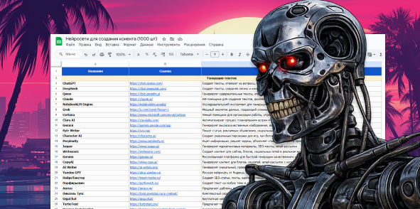 За 6 месяцев я опубликовал 50+ подборок. Эти материалы набрали сотни тысяч просмотров на VC.ru и 15+ тысяч пересылок в моем телеграм-канале. Тут подборка со всеми нейросетями. Забрать таблицу: Что внутри (нейросети): генерация текстов, нейросети по SEO, маркетинг, соцсети, пересказы текстов, аудио в текст, Email-рассылки, создание книг, переводы текстов, генерация изображений, веб-дизайн, 3D-модели, логотипы, улучшение изображений, дизайн одежды, удаление водяных знаков, генерация видео, оживление картинок, генерация музыки, генерация ИИ-аватаров, генерация презентаций. Поставь сердечко и напиши в комментариях. Присоединяйся к 8800+ подписчиков в Бегин, чтобы получать полезные подборки каждую неделю.