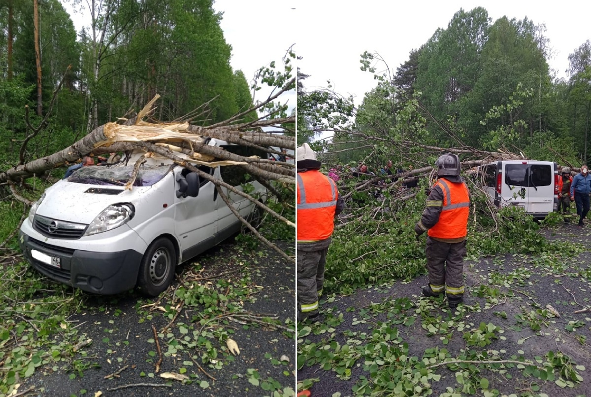 Упавшее дерево придавило людей в микроавтобусе в Карелии
