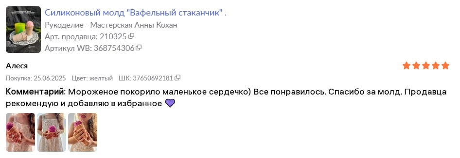 Самый милый отзыв с ВБ на молд от Алеси )) Благодарю вас от всей души ! Маленькое сердечко уже сейчас с огромным чувством прекрасного