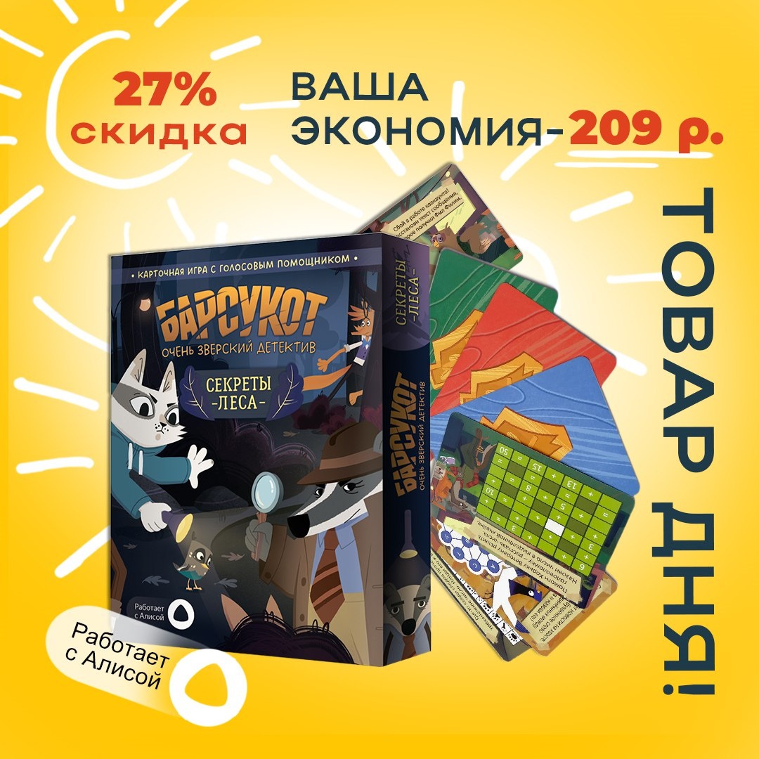 Цены продолжают таять! 🔥🔥🔥 Только СЕГОДНЯ, 5 июля, настольная игра с голосовым помощником 🔍💡🦊🐿 «Барсукот. Очень зверский детектив. Секреты леса» по мотивам популярного сериала от Кинопоиска стоит 539 рублей вместо 748! 🥳 ⚡Успейте заказать до вечера! Завтра цена снова станет обычной. https://www.wildberries.ru/catalog/328009170/detail.aspx?targetUrl=SP