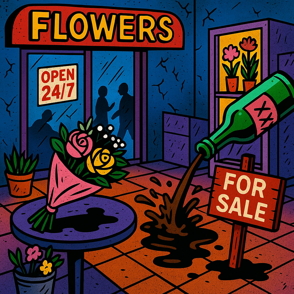 На витрине — идеальный круглый букет с блестками и ресничками. А в душе — тоска, бессонница и три неоплаченных счёта от поставщика. Магазин открыли с пафосом. Были шарики, баннер: «Работаем круглосуточно!» "Конкуренты, вам хана", и уверенность, что теперь-то всё пойдёт. Через месяц флорист написала заявление, а директор заказывал пиццу с пометкой: «На двоих. Я и моя безысходность». 📍 Что пошло не так? 🔸 1. Местоположение “огонь”? Да, место на проходе. Да, люди ходят. Но мимо. А мимо — это важно. Потому что цветы у нас, оказывается, не на первом месте. Там шаурма, аптека, доставка, табачка и “вот там через дорогу дешевле”. Цветы нужны, но "не сейчас", "не здесь" и "в другом месте". Поток — не значит продажи. И вот тут была первая ошибка. 🔸 2. “Флорист найдётся” Нашли. За 28 000 ₽ в месяц. С отличным вкусом. С аллергией на розы. И с фирменной фразой: «Не разбирайтесь - идите на рынок». Клиенты не возражали. Они просто уходили. 🔸 3. Ассортимент “как у всех” Ну да, как у всех. Та же г