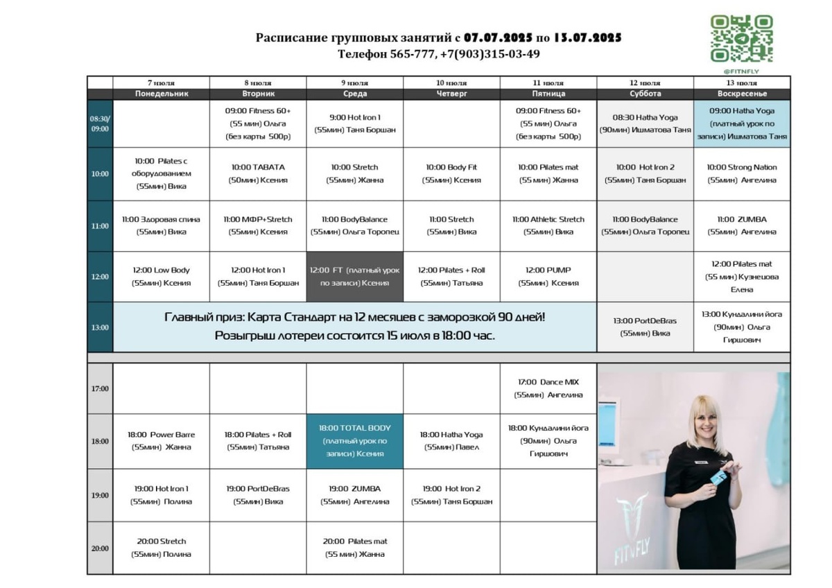 ⏩ Расписание групповых занятий с 07.07.25 по 13.07.25
