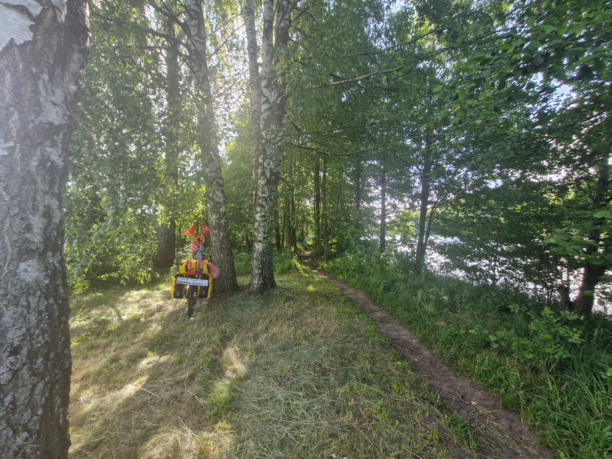 1 июля (54 день). Утром с опаской и дрожью в коленях повесил сумки на задний багажник и аккуратно повёл велосипед по тропинке к асфальту.