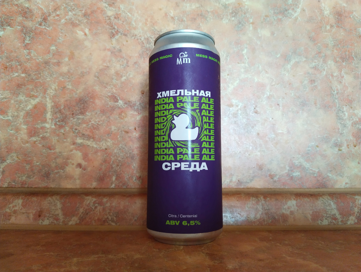 Пивы от Magic Mess пил нечасто - и звёзд они с неба не хватали, тем не менее прикупил условную новиночку от "утиной пивоварни", даже несмотря на цену. А цена кусачая... И, вот, после некоторого перерыва в обозревательстве я возвращаюсь, чтобы рассказать вам про свои впечатления от дегустации... Это среда, чувачок! А среда — не просто день между "ещё" и "уже", это твой личный челлендж против рутины. Поставь рабочие чаты на mute и насладись насыщенным чистым вкусом свободного вечера с ароматными нотками Citra и Centennial. "Хмельная среда" — для тех, кто готов ломать стереотипы и пить не только лагер по пятницам. Алкашка/плотность - 6.5%/15%. IBU - ???. Стиль - APA. Объём - русская пинта 0.45 л. Цена - 420 тугриков в разливайке Папа Крафт. г. Краснознаменск. М.О. Состав - вода питьевая, солод пивоваренный ячменный, хмель гранулированный, дрожжи пивные. Хмель - Citra, Centennial. Дата розлива - 26.05.2025. Производитель - ООО "Мэджик Брювери". г. Санкт - Петербург. Россия. Пивоварня