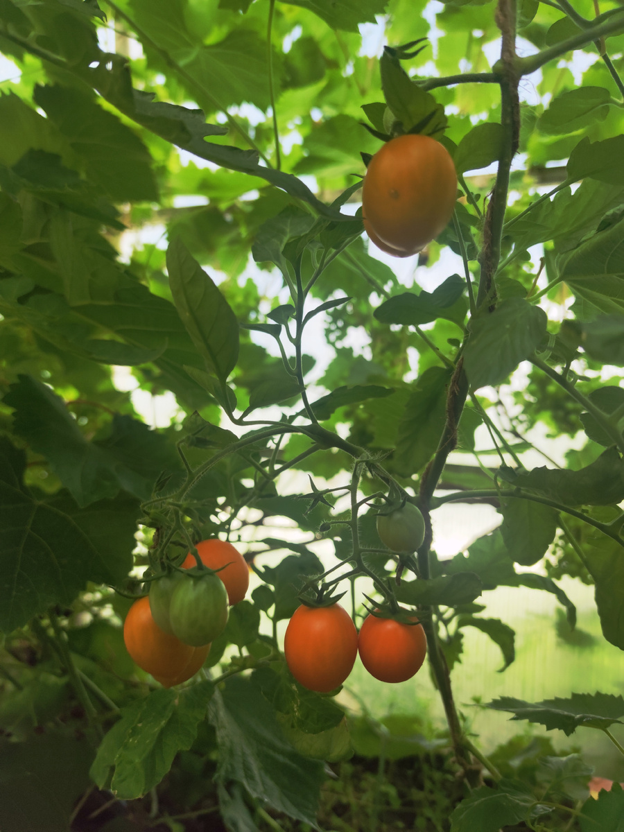 Наконец то наступает лето, с понедельника, так точно! В открытом грунте хвастаться особо не чем, но теплица в такой июнь спасает. Праздник первого огурца уже и забылся, начинается уже их заваривание. А. Вот первые созревшие к случаю томаты, радуют глаз. Сладкий перец, наверно уже давно можно было есть, он по всей видимости зелёный. Базилик уже щипался, но сейчас пора уже делать песто. Ну а сидящие на передержке саженцы амурского винограда,муже почти закончили окрашивать свои кисти. Этот амурец и в открытом грунте раньше всех это делает. Всех с наступающим, настоящим летом, не пропустите! ;-)