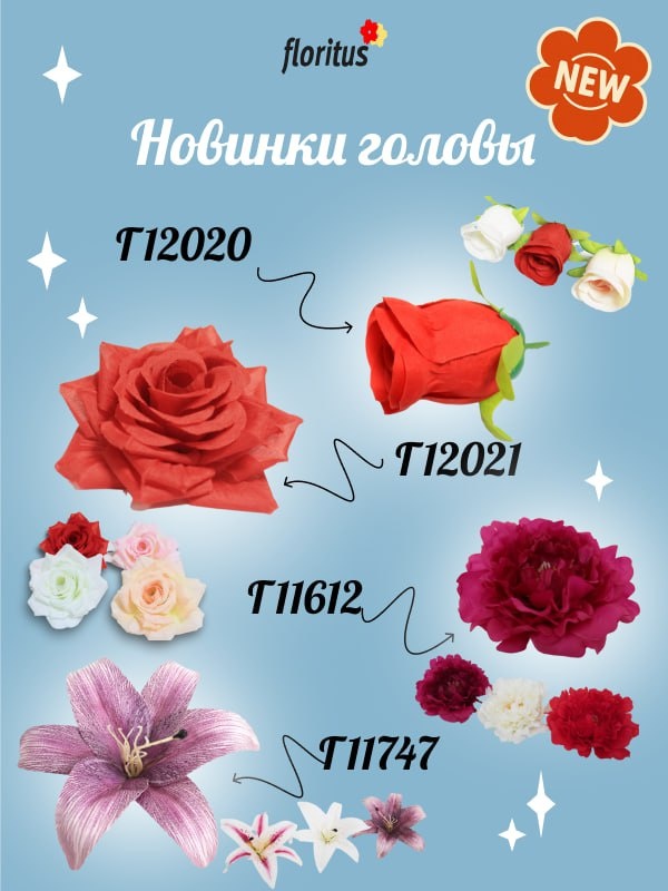 🔥Н О В И Н К А🔥 Стильные, выразительные и такие разные — выбирайте свои фавориты для декора, композиций и фото! ✨ Г12020 Бутон "Новомодная юбочка", d=8 см 📦 В упаковке: 20 шт 💫 Объемный и стильный — идеально для акцентов! 🌹 Г12021 Роза "Карден" с 9 слоями лепестков, d=11 см 📦 В упаковке: 20 шт 💎 Пышная классика — всегда в тренде! 💮 Г11612 Пион "Селебрити", d=14 см 📦 В упаковке: 20 шт 🌷 Воздушный, как облако — мечта флориста! 🌼 Г11747 Евро-лилия из латекса, большая, d=21 см 📦 В упаковке: 20 шт 🌟 Реалистичная и эффектная — для смелых решений! 🛒 Всё уже в наличии — заказывайте на сайте Флоритус! С новыми цветами — новые идеи и вдохновение!