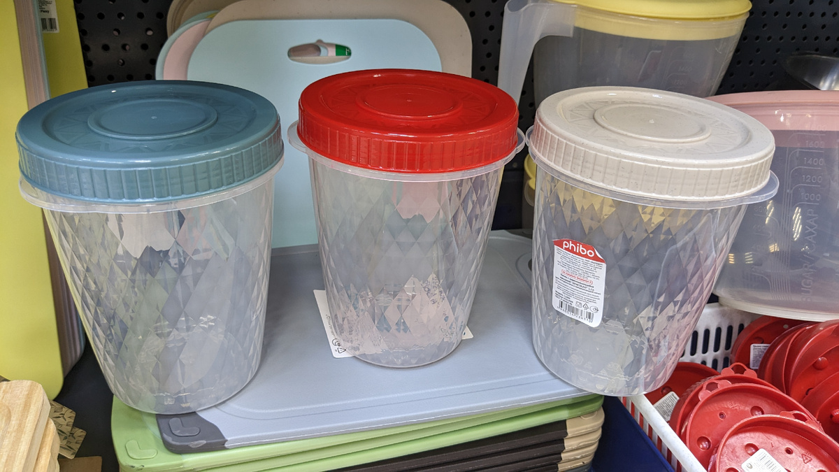 Добрый день, уважаемые читатели и мои зрители! У нас снова пасмурно, обещают дождь и в такую погоду я люблю ходить в Фикс Прайс. Сейчас почти середина лета, период отпусков и я переживаю, что не так часто будут выкладывать в Фикс Прайс товары. Точно знаю, что некоторые сотрудники в отпуск ушли, а кто-то даже на больничном. Сегодня обнаружила интересные товары в разные отделах. Среди контейнеров появились банки с завинчивающимися крышками - обычный высокий пищевой контейнер. Серия "Кристалл" Объем 1,1 литр, крышки разного цвета. Компания "Бытпласт" Рисунок прощупывается внутри, снаружи банка гладкая Подойдет для хранения круп или для транспортировки продуктов, в том числе жидких блюд Цена 62 руб Цветные кружки, объемом 350 мл Рисунок по всей кружке, внутри белая, но не белоснежная. Форма классическая, распространенная. Рисунки разные Дефектов вроде нет, яркие, летние. Цена 116 руб Новая партия мягких игрушек Вроде таких еще не было Мне очень понравился крокодил и еще очень яркий флам