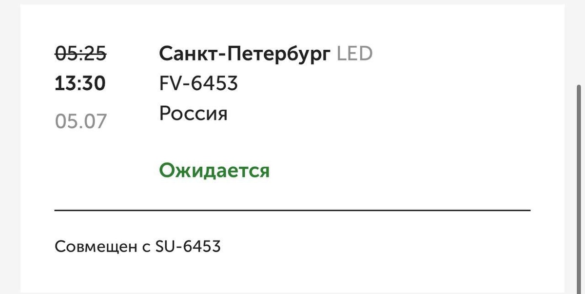 В ответ на пост Самолет из Санкт-Петербурга до сих пор не прибыл Судя по табло, он должен был прибыть в 05:25, однако теперь время стоит 13:30. Был перенесен рейс и из Сочи, который должен был прибыть в 16:30, а теперь прилет стоит на 20:10. Также наложены ограничения на использование воздушного пространства в некоторых секторах Москвы, возможны корректировки в расписании. Об этом заявляет Росавиация.