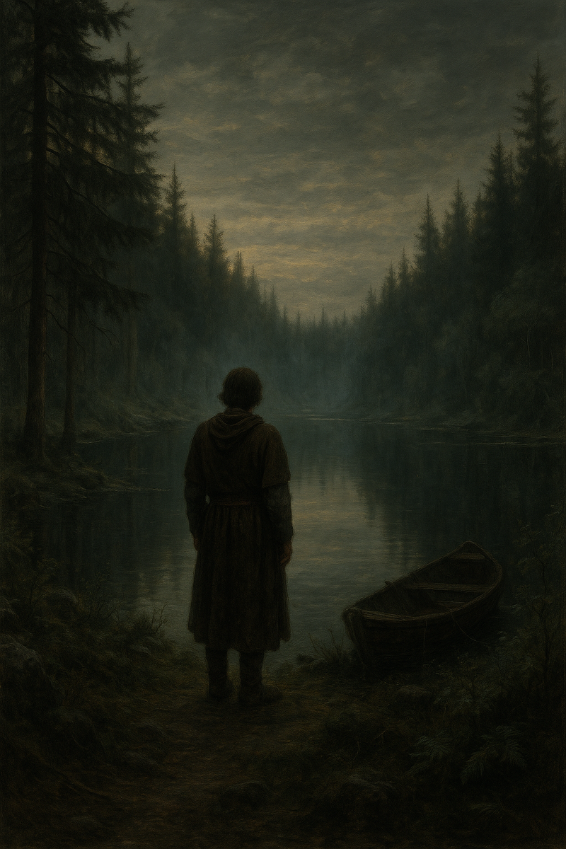 Говорят, что много веков назад, в далёком северном краю России, в небольшой деревне, расположенной на берегу древнего лесного озера, случилось необычное событие, которое до сих пор передаётся из поколения в поколение. Этот рассказ берёт своё начало в XVII веке, в 1643 году, когда на землю этой деревни пришли тёмные времена... В те годы деревня называлась Зелёный Бор. Жители её были простыми крестьянами, жившими в гармонии с природой. Однако однажды весной, когда снег только начал таять, случилась беда. В лесу пропал молодой охотник по имени Иван — храбрый и любимый всеми. Никто не мог понять, куда он исчез, ведь он знал лес как свои пять пальцев. Прошли дни, а потом и недели, но Иван так и не вернулся. Вскоре жители начали замечать странные явления: с наступлением темноты из леса доносились зловещие стоны и шёпоты, а на берегах озера появлялись странные следы, которые невозможно было объяснить. Старейшины деревни решили обратиться к ведунье, которая жила на окраине леса. Она поведала