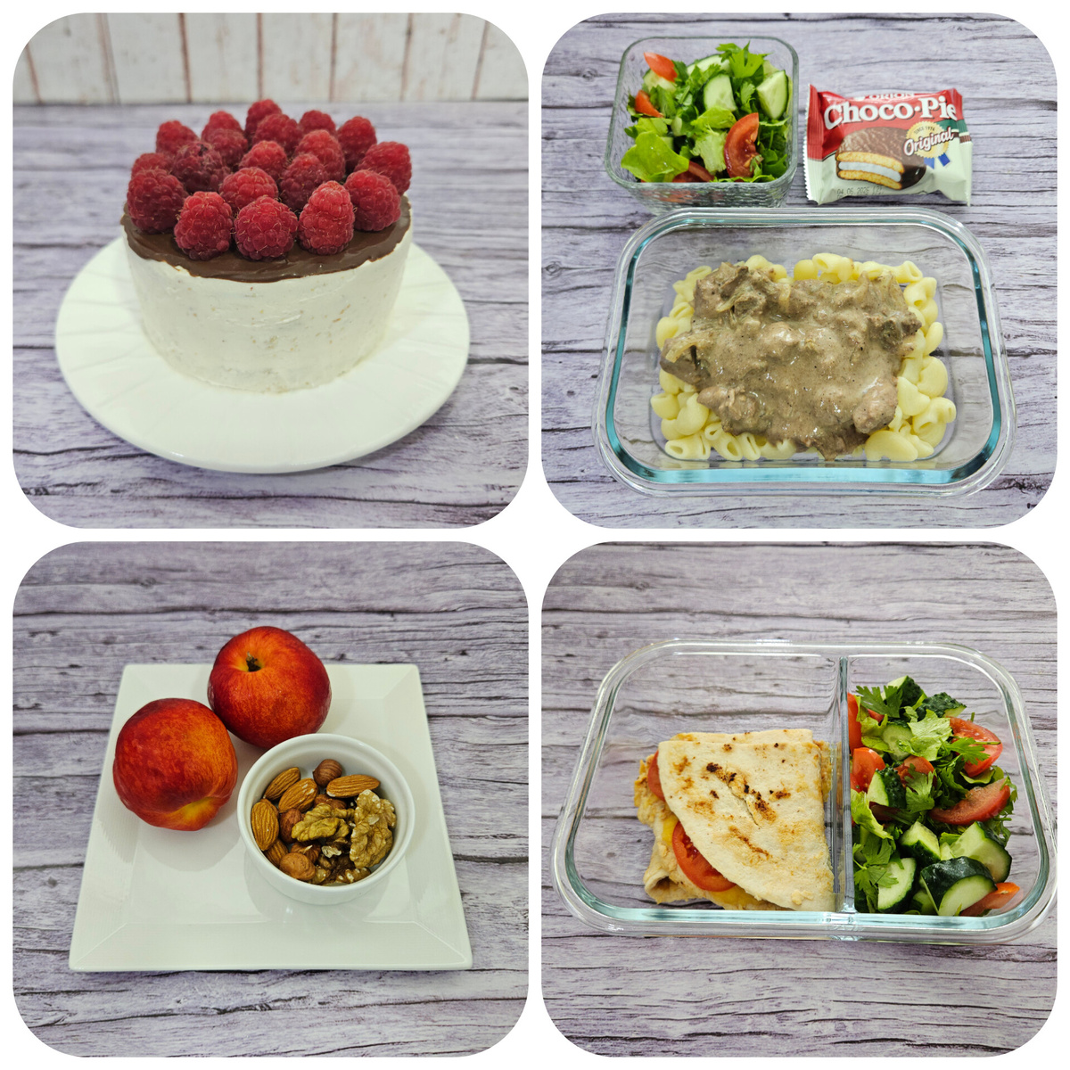 В этой статье я покажу Вам простой рацион на день для похудения на правильном питании. Это 4-х разовый рацион из доступных продуктов со вкусными и простыми рецептами. В миску поместить яйцо, яблочное пюре, муку, разрыхлитель и подсластитель. Перемешать до объединения ингредиентов. Перелить в силиконовую форму диаметром 10 см. Выпекать в микроволновке при мощности 800 Вт 3 - 4 минуты. Дать бисквиту остыть. Разрезать на 3 коржа. Смешать для крема мягкий творог с арахисовой пастой и подсластителем. Корж пропитать молоком, смазать кремом и повторить слои. Обмазать верх и бока тортика кремом. Убрать в холодильник на пару часов. Шоколад залить молоком и растопить в микроволновке. Полить сверху тортик глазурью и украсить малиной. Печень промыть, нарезать на кусочки. Сковороду разогреть. Выложить печень и обжарить на сильном огне, постоянно помешивая, до побеления. Лук нарезать полукольцами. Добавить к печени, перемешать. Сметану смешать с крахмалом, добавить к печени. Посолить и поперч
