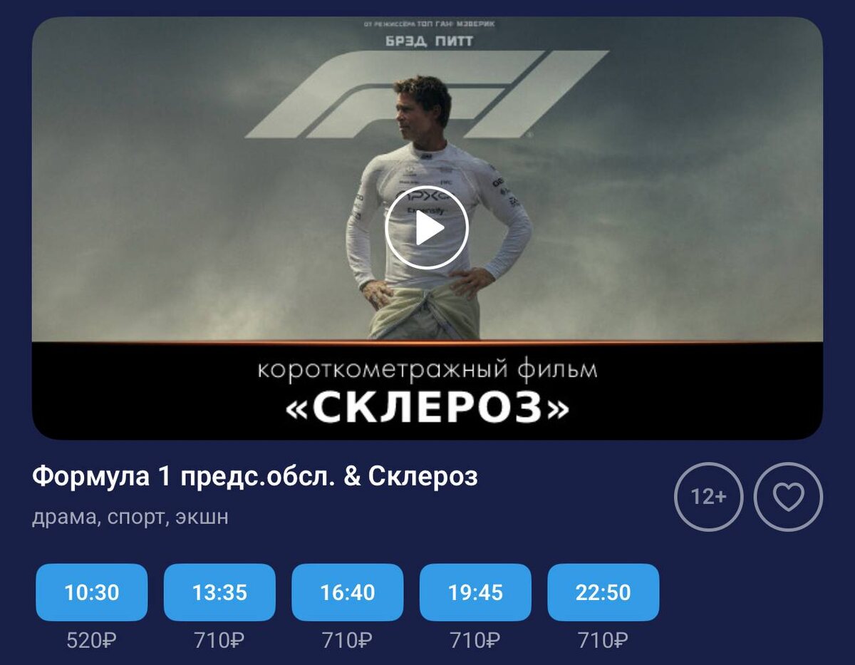 Хитовый фильм «Формула 1» с Бредом Питтом вышел в России — блокбастер собрал шикарные оценки критиков и зрителей. Сюжет прост: Питт играет опытного гонщика, который возвращается в большой спорт после тяжелой аварии. Соцсети подтверждают: фильм зайдёт, даже если не любите гонки. С планами на субботу определились. @nejroai