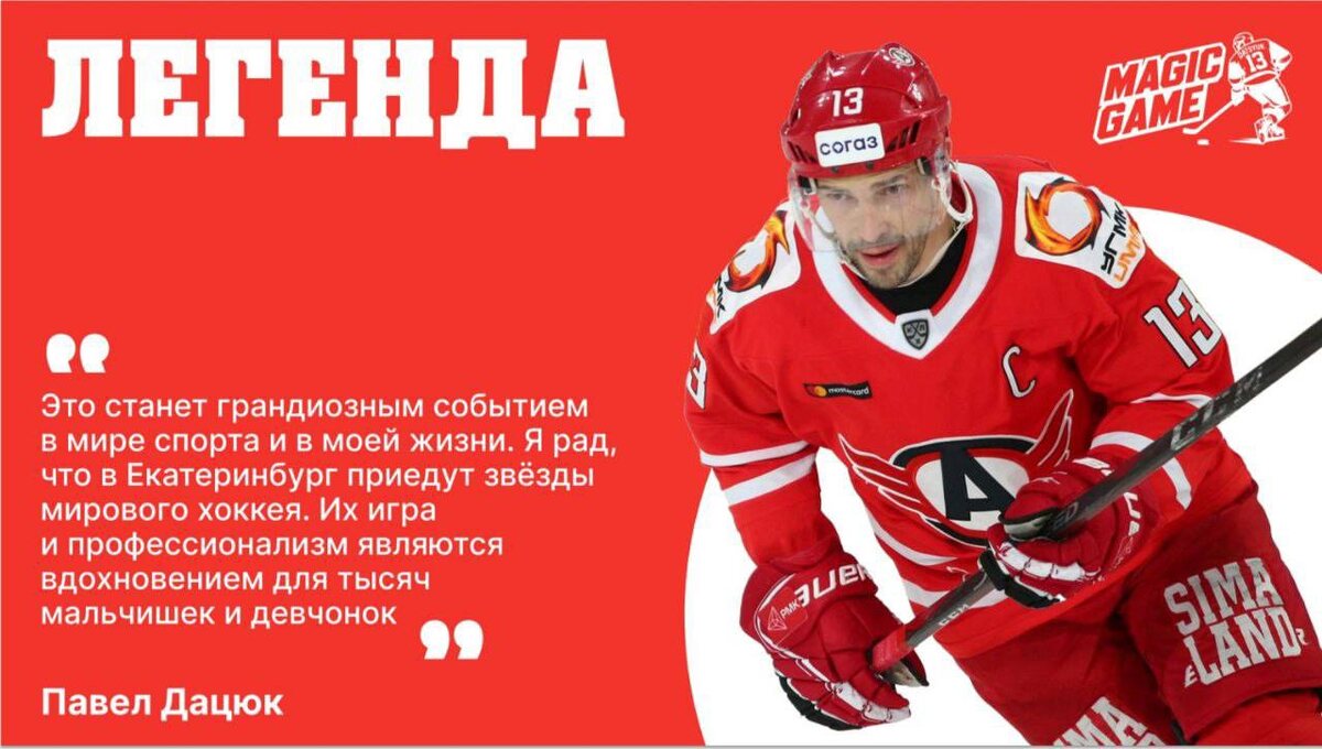МАГИЯ ХОККЕЯ 30 АВГУСТА В ЕКАТЕРИНБУРГЕ! «Волшебник» Павел Дацюк, «Красный майор» Вячеслав Фетисов, «Кови» Илья Ковальчук, «Захватывающий Кирилл» Кирилл Капризов, «Федс» Сергей Федоров, легендарный Валерий Каменских и другие звезды мирового хоккея выйдут на лед в матче The Magic Game. 🗓️ – 30 августа 📍 – УГМК-Арена, г. Екатеринбург Источник: @themagic_game
