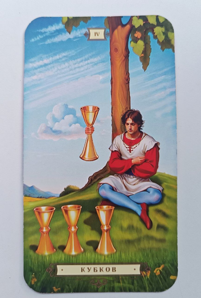 🃏Карта дня суббота 05.07.2025 4 Кубков День, когда вы будете ощущать уныние и разочарование. Вам будет казаться, что ничего не может принести вам должного удовлетворения. Попробуйте обратить внимание на то, что происходит вокруг вас. Смена вида деятельности поможет справиться с хандрой. Возможно, то самое дело, которое принесёт вам удовольствие совсем рядом. День может стать намного лучше, если вы приложите к этому усилия!