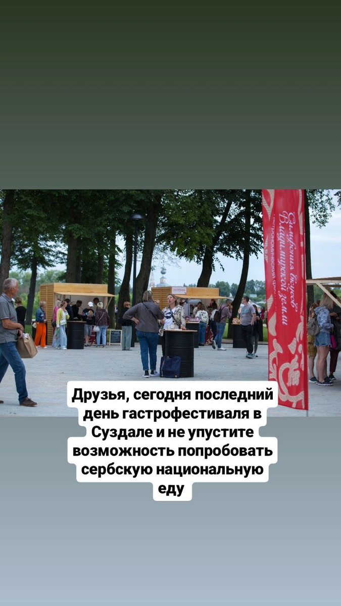 СЕГОДНЯ ЗАКРЫТИЕ ФЕСТИВАЛЯ, ОТВЕДАЙТЕ ПЛЕСКАВИЦУ ПОД ЗВУКИ АТМОСФЕРНОЙ КАМЕРНОЙ МУЗЫКИ ✨ Расскажем немного о сербской кухне: 🇷🇸Сербская кухня – это праздник вкуса и ароматов. 🇷🇸Сербы — настоящие мясоеды! 🇷🇸 Мясо — неотъемлемая часть их рациона, и его готовят во всех видах: жарят, тушат, коптят, вялят. 🇷🇸 Сербская кухня сохраняет традиции и использует проверенные рецепты. В каждой семье есть свои секреты приготовления блюд. 🇷🇸Сербы — гостеприимные люди, и традиции гостеприимства тесно связаны с кухней. 🤝 В каждом доме вас встретят с улыбкой и щедро угостят вкусными блюдами, приготовленными с любовью. 🇷🇸Приходите к стенам Кремля в Суздале и попробуйте плескавицу по рецепту Стефана, которая сделана с любовью 🧡 Добро дошли у Малу Србију mserbia.ru/ Са љубављу,❤ Евгения и Фёдор Мы ждём вас
