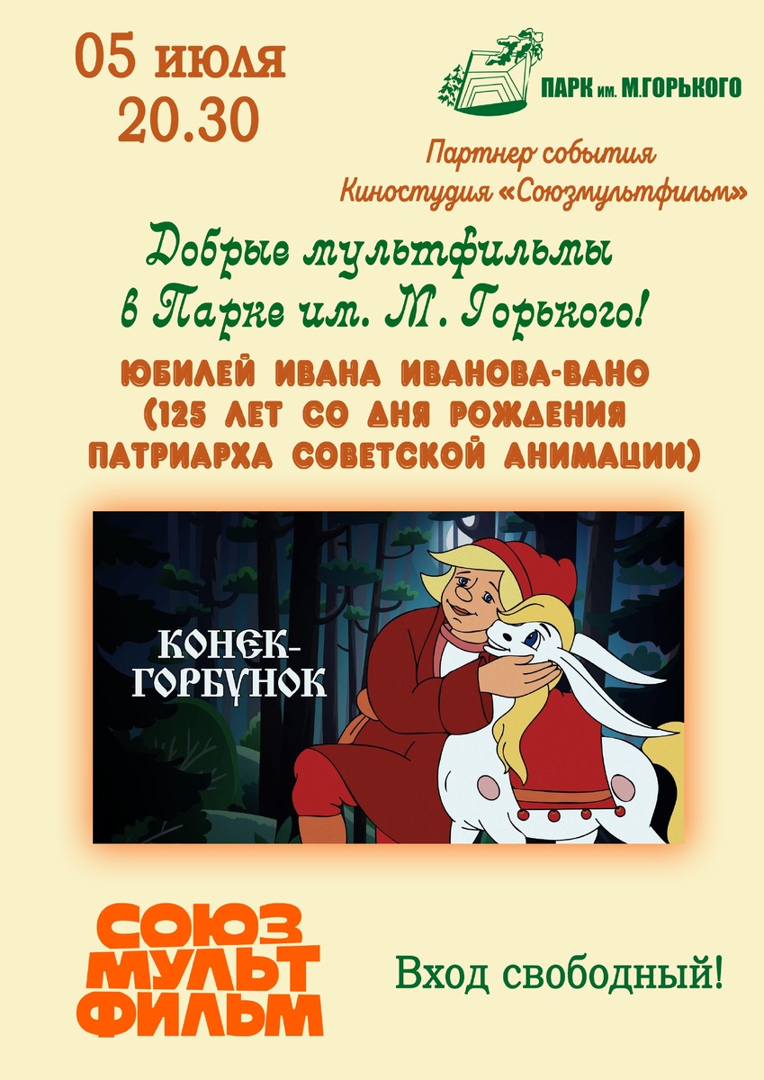 🎬5 июля в 20:30 на центральной эстраде Парка им. М. Горького ждём всех на показ мультфильма «Конёк-Горбунок» от киностудии «Союзмультфильм»! 📌Вход свободный! 🫠 Детские мероприятия Ростов-на-Дону. Я местный!