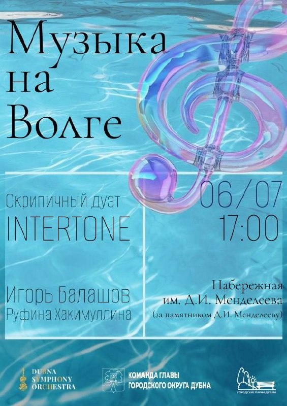 🌊🎶Новый концерт в рамках фестиваля «Музыка на Волге» - 6 июля в 17:00 на площадке за памятником Д.И. Менделееву выступит великолепный скрипичный дуэт INTERTONE: любимец публики Игорь Балашов и талантливая Руфина Хакимуллина. В программе — только самая зажигательная музыка! @Телеканал «Дубна»