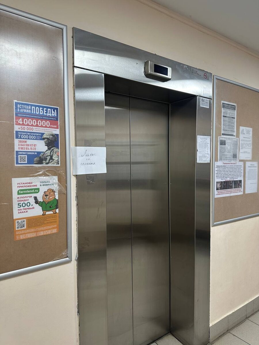 ▫️▫️▫️▫️▫️▫️▫️▫️ В доме 6 на улице Лукачева не работает лифт уже около 2 месяцев В 4 подъезде здания их два. Но из-за поломки всем жильцам многоэтажки приходится делить оставшийся лифт, что периодически доставляет массу неудобств. «Приходится ждать, из-за чего собираются огромные очереди, пока лифт отвезёт пассажиров и приедет за следующими. Это уже правда становится невозможным, да, пеший ход — это здорово, но не когда ты живёшь на 24 этаже», — сообщает местный житель. ✅ Проект ГТРК «Самара» «Жалобная книга». Свои обращения вы можете оставлять в личных сообщениях ГТРК «Самара» в социальной сети ВКонтакте и «Гостевой книге» сайта компании. 📸 ГТРК Самара