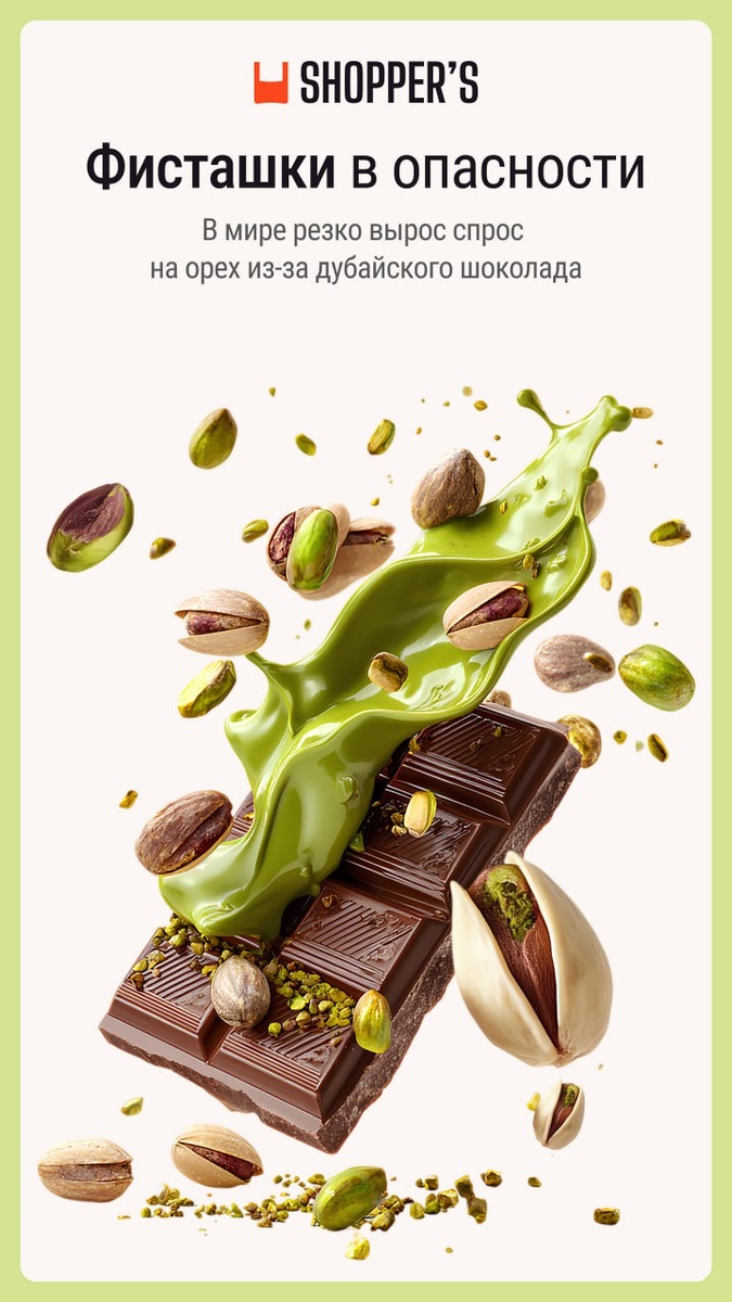 🇦🇪 Повальное увлечение дубайским шоколадом вызвало небывалый спрос на фисташки. Оригинальный рецепт придумала компания Fix Dessert Chocolatier из ОАЭ. Но теперь фисташково-кунжутную смесь или просто фисташки куда только ни добавляют: в десерты, выпечку, пасту, напитки. 🍫 Европейские производители шоколада Prestat, Lindt и Laderach запустили продажи «дубайской версии» и были ошеломлены спросом. В Starbucks второй год подают фисташковый латте, в российских ресторанах «Теремок» появились блины с дубайским шоколадом. 💸 Ажиотажный спрос привел к нехватке фисташек в мире и, соответственно, — к росту цен. За год орешки подорожали на 17%, до $10,5 за 1 фунт (453 г). Не исключено, что в будущем сезоне при ожидаемом рекордном урожае цены пойдут вниз. Фермерам остается надеяться, что популярность дубайского шоколада не схлынет и высокий спрос на фисташки удержится. Как дубайский шоколад завоевывает мир и хватит ли на всех фисташек — смотрите на карточках и читайте в тексте Shopper’s. 🤩 Б