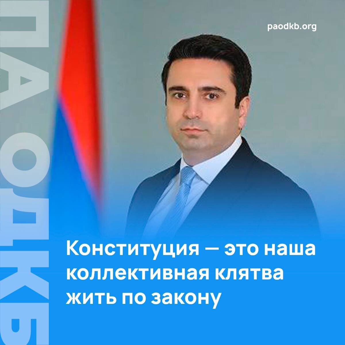 🇦🇲 5 июля спикер НС Армении Ален Симонян поздравил соотечественников с Днём Конституции. 🇦🇲 Он отметил, что Конституция является выражением идентичности, достоинства и свободы. «Конституция – это наша коллективная клятва жить по закону и руководствоваться справедливостью», - говорится в его послании. 📃 Симонян убежден, что Армения может стать сильным государством лишь тогда, когда закон станет непререкаемой ценностью. «Никто не должен ставить себя выше закона – независимо от своего статуса и занимаемого в обществе положения», - добавил он, заверив, что власти и впредь будут делать все возможное, чтобы в Республике все были равны перед законом. Подробно ➡️ paodkb.org Сайт | VK | Fb | X | Instagram | dzen