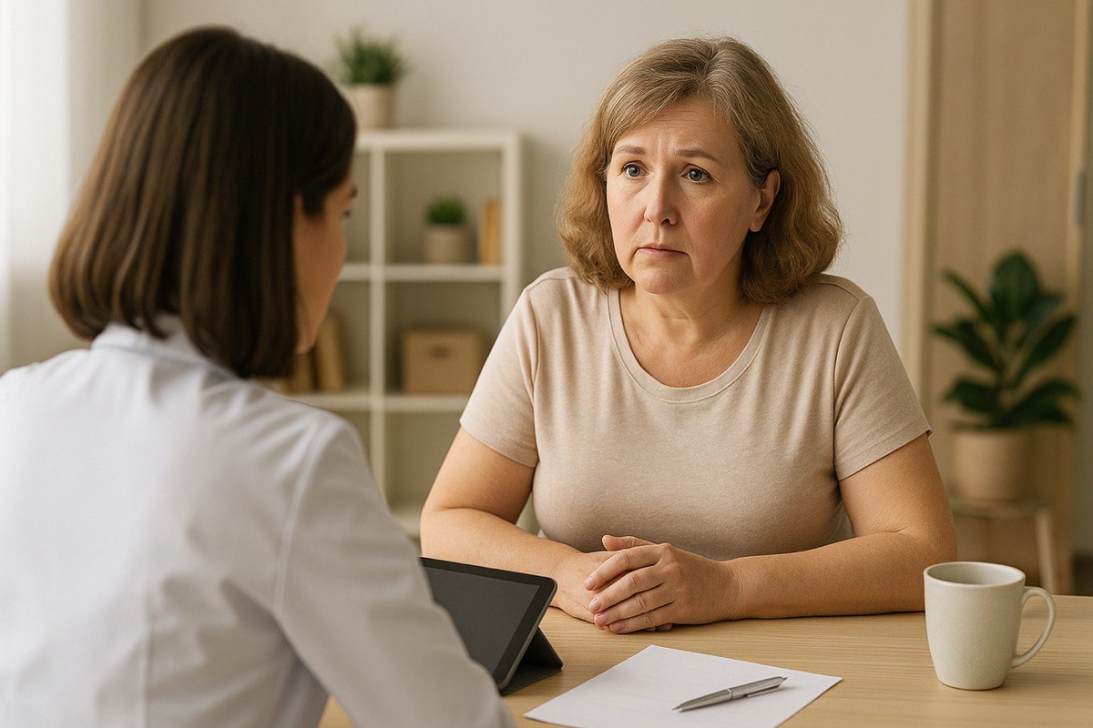 Елене — 53. На приём пришла с решительным намерением снижать вес. Сдала анализы, ведёт дневник, считает калории. В прошлом — курсы от эндокринолога, консультации с нутрициологом, подписка на десятки «полезных» каналов в Telegram.
