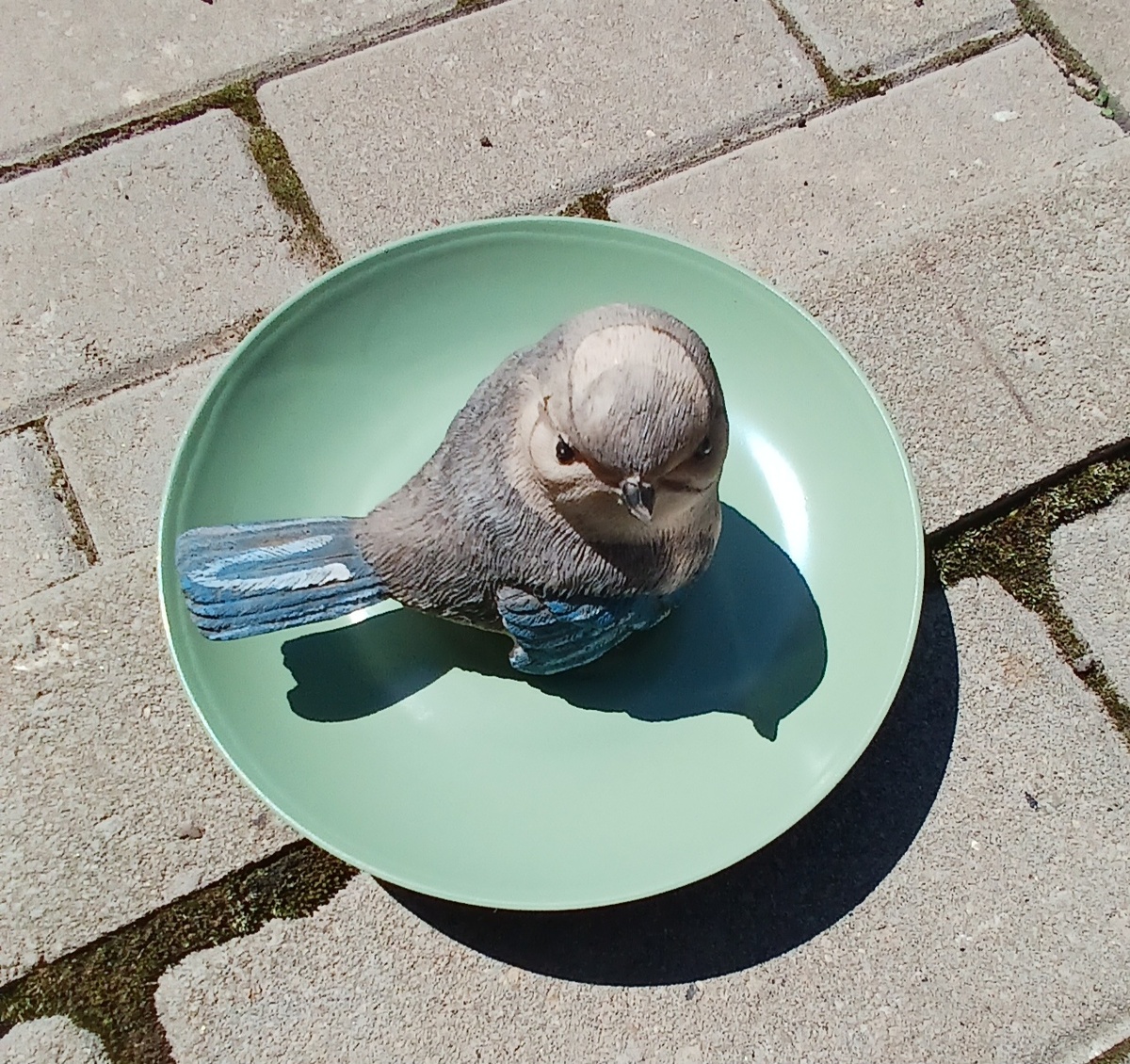 В итоге у меня получилась вот такая птичья поилка. Пока поставила ее на клумбу.