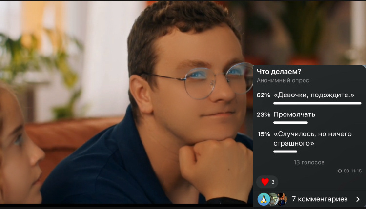 Извините пожалуйста за отсутствие 🩷 Веник: девочки, подождите. Соня: ЧЕГО НАМ ЖДАТЬ?! ПОКА МАМА ОПЯТЬ УЙДЕТ? Веник: перестань Соня: НЕ ПЕРЕСТАНУ! ВЫ СТОЛЬКО ДОБИВАЛИСЬ ДРУГ ДРУГА, ЧТО БЫ ПОТОМ ВЗЯТЬ И РАЗВЕСТИСЬ? И резко вышла из комнаты, захлопнув дверь Даша: Сонь… Лиза грустно: вы разводитесь? Диана саркастично: интересный у них развод! Сидеть на кровати в обнимку! Арина: вы правда разводитесь? Даша с Веником: нет! Даша: ..пока что… И отодвинулась от Веника Диана: ну все! Мне надоела эта санта барбара! Арина: что? Диана, закатив глаза: ты даже этого не знаешь! Арина: я знаю! Просто… забыла Лиза: в разговорной речи выражение Санта-Барбара используется для описания запутанных, длительных и драматических ситуаций, особенно в контексте сложных личных отношений. Арина: а попроще? Даша тихо: а попроще может сказать Машка… Если сама в своих словах не запутается Лиза подошла к родителям и обняла их, а затем взяла папу за руку и повела на кухню Диана с Ариной заперли дверь в ком