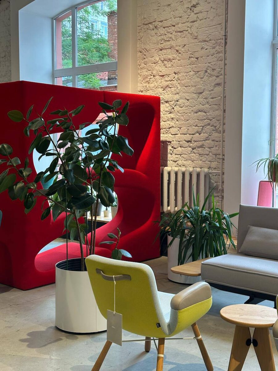 Офис Flai Group в Петербурге: Почему здесь невозможно работать "как все" Знаешь, что самое коварное в офисе Flai Group? В него невозможно не влюбиться. А потом – вот беда – невозможно забыть. Это не просто рабочее место. Это пространство, которое незаметно меняет твои стандарты. Навсегда. Почему от него не устаешь? Он живой и разный: Это не монотонные ряды бежевых кубиков. Индустриальные своды "Механобра", игра света в панорамных окнах, фактура бетона, теплая шерсть тканей GrisGrau, сочные акценты мебели HAY или виртуозные линии vitra. Каждый уголок – визуальная история. Глазу есть за что зацепиться, мозгу – от чего получить дозу эстетического удовольствия. Однообразным такой офис не станет просто физически. Он настоящий: Это не бутафорский "креатив". История места (промышленный лофт) честна. Материалы (дерево, металл, шерсть, камень) – осязаемы и качественны. Мебель – не декорация, а рабочий инструмент, который можно протестировать на себе прямо здесь. Такая подлинность не раздраж
