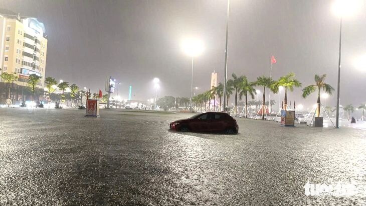 Сегодня вечером сильный дождь затопил центральные улицы Дананга.