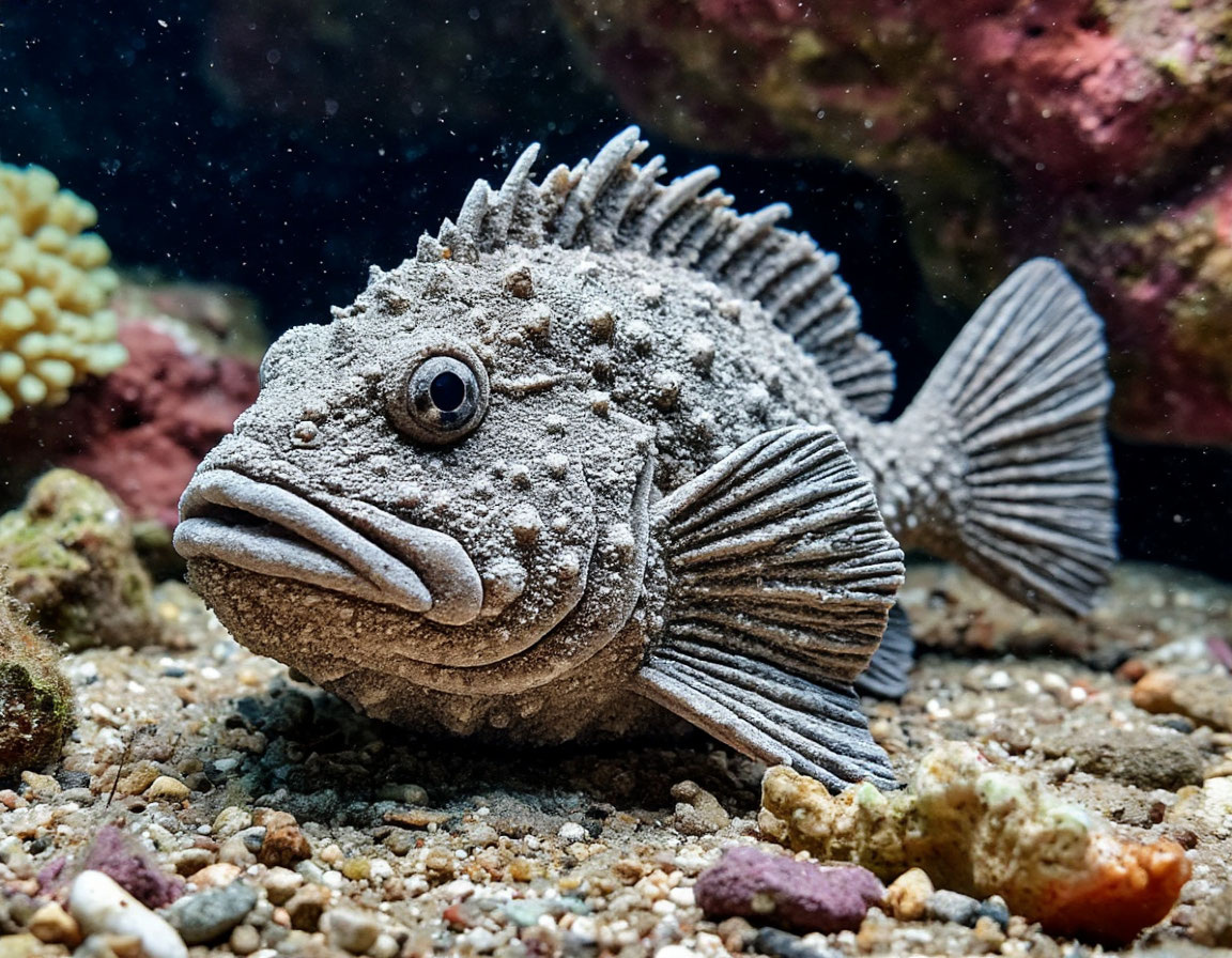 Рыба-камень (Synanceia) принадлежит к семейству бородавчатковых. Её длина обычно не превышает 30-40 см. Главная особенность этой рыбы - потрясающая способность к маскировке. Благодаря бугристой коже и серо-коричневой окраске она практически сливается с морским дном, кораллами и камнями, что делает её практически невидимой для потенциальных жертв и хищников. Обитает преимущественно в тропических водах Тихого и Индийского океанов, часто встречается у побережий Австралии, Индонезии и Филиппин. Ядовитый аппарат Рыба-камень обладает одним из самых совершенных ядовитых аппаратов среди морских обитателей: При уколе шипами рыбы-камня наблюдаются: Первая помощь: Рыба-камень - удивительный пример эволюции, демонстрирующий, как эффективно природа может сочетать совершенную маскировку с мощным защитным механизмом.