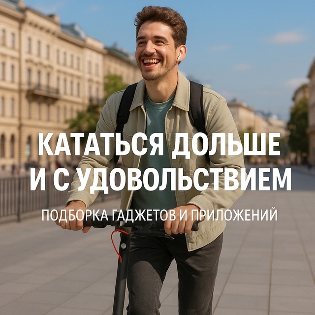 Хочешь кататься чаще, но не хватает мотивации? Мы составили подборку приложений и гаджетов, которые превращают обычные поездки в игру, мини-приключение и даже образовательную паузу. 1. Смарт-спидометр или GPS-трекер: Отображает скорость, маршрут, заряд и другие метрики. Такие модели, как Garmin или CYCPLUS, подойдут и для городских поездок, и для дальних заездов. 2. Навигационные приложения: Google Maps, Komoot, Ride with GPS Удобно прокладывать красивые или безопасные маршруты, особенно если хочешь объехать пробки или открыть новые места. 3. Беспроводные наушники с режимом прозрачности - Слушай подкасты или плейлист для хорошего настроения, не теряя контроль над обстановкой вокруг (AirPods Pro, Nothing Ear и т.п.) 4. Экшн-камера - Снимай поездки на GoPro или Insta360 — особенно круто, если катаешь в живописных местах или хочешь собрать ролики для соцсетей. 5. Смарт-замок или трекер (например, Xiaomi U-lock + AirTag) Надёжная защита от угона и способ всегда знать, где твой самокат. 6.
