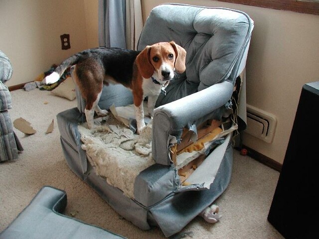 Бигли — стайные псы, привыкшие жить в своре. Одиночество для них = Меня бросили! И они будут голосить так, что соседи подумают, будто ты мучаешь животное.