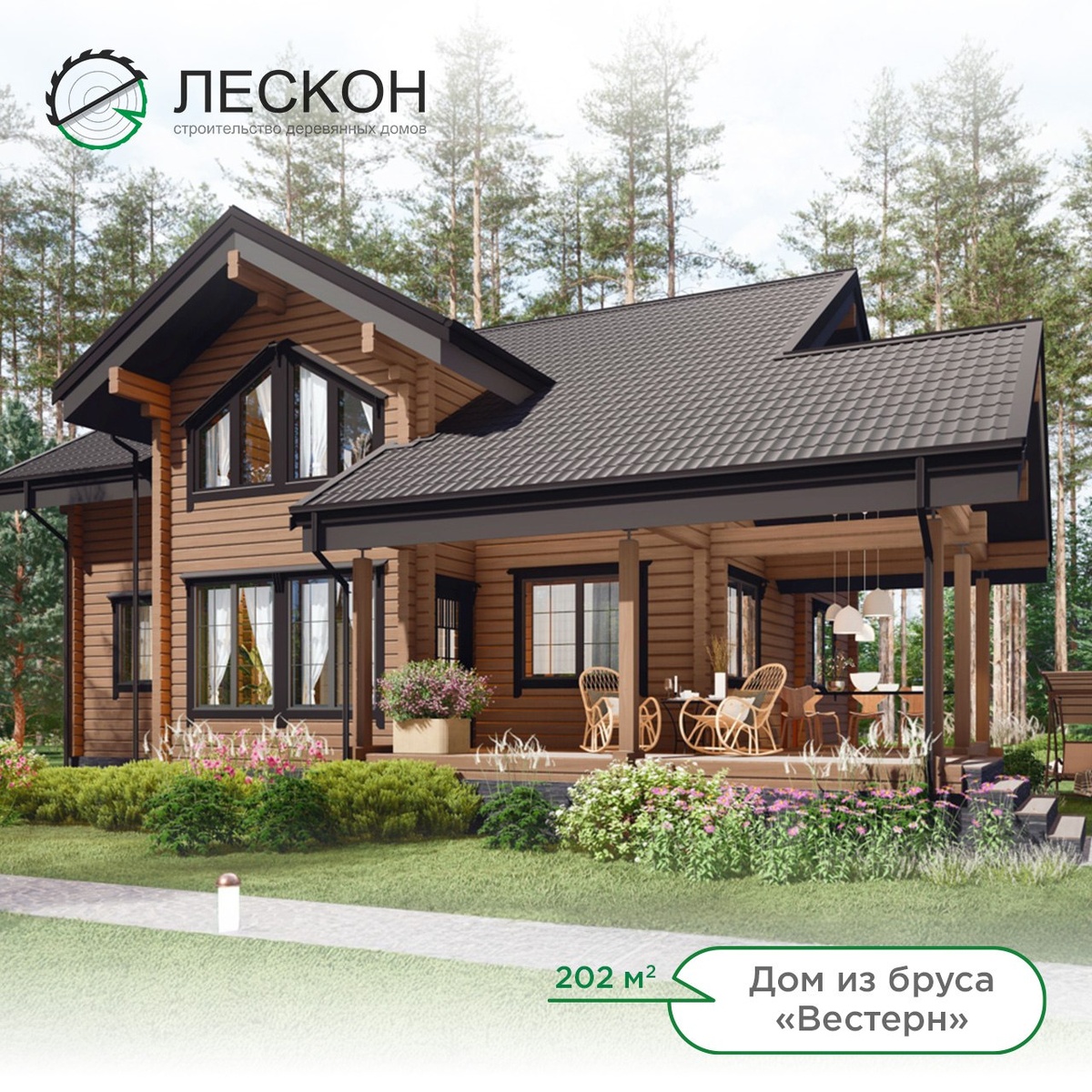 🏡 Проект "Вестерн" — это просторный двухэтажный дом из клееного бруса, который точно понравится любителям современного дизайна! Лаконичный фасад с мансардным окном и большая угловая терраса (22 кв. метра!) создают гармоничное сочетание стиля и функциональности, наполняя дом светом и создавая идеальные условия для уютных вечеров на свежем воздухе. 🌞 Общая площадь проекта 202 кв.м. ✨ В двухэтажной планировке предусмотрена просторная кухня-гостиная на 47 кв.м., пять жилых комнат площадью от 13 до 16 кв.м., два санузла, отдельная котельная и две входные группы – все для максимально комфортного проживания! 💪 🌟 "Вестерн" — это отличный выбор для тех, кто ищет стильный и экологичный дом для постоянного проживания, где всегда будет просторно, уютно и приятно принимать гостей. 💚 Стоимость на сайте: https://les-kon.ru/projects/s-verandoi/651/. Там же представлено более 200 готовых проектов, выбирайте дом своей мечты и звоните нам! 😉 #лескон #деревянныедома #домаизбруса