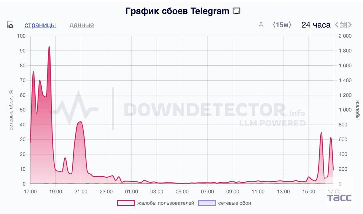 Российские пользователи Telegram сообщали о сбоях в работе мессенджера, свидетельствуют данные сервиса Downdetector